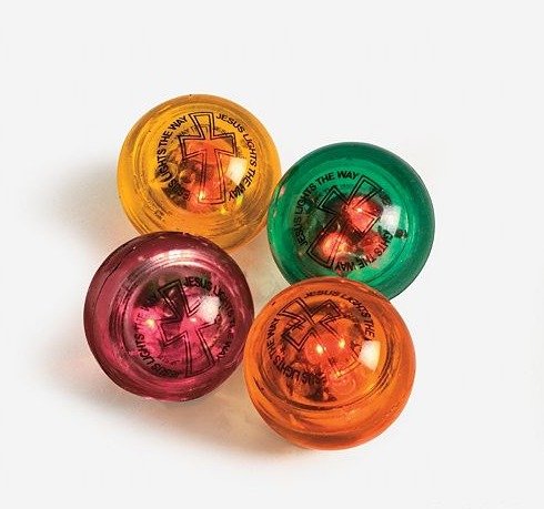 BR These flashing bouncing balls feature a cross and the phrase Jesus Lights the Way Balls are made from rubber and flash when you bounce them These are great Easter party favors prizes at church carnivals or treats for Sunday School or VBS Great Christmas stocking stuffers too Balls mea Read More..